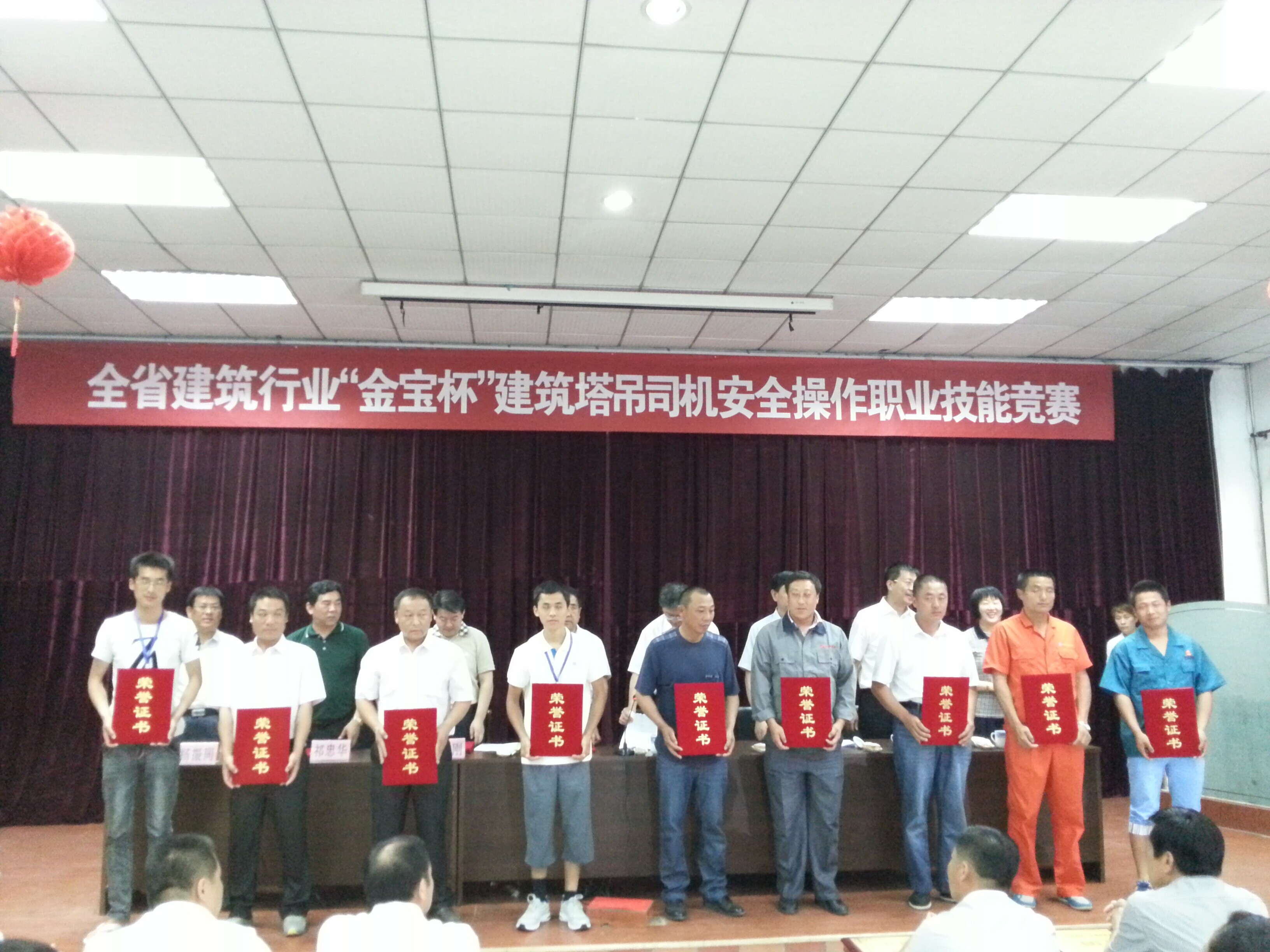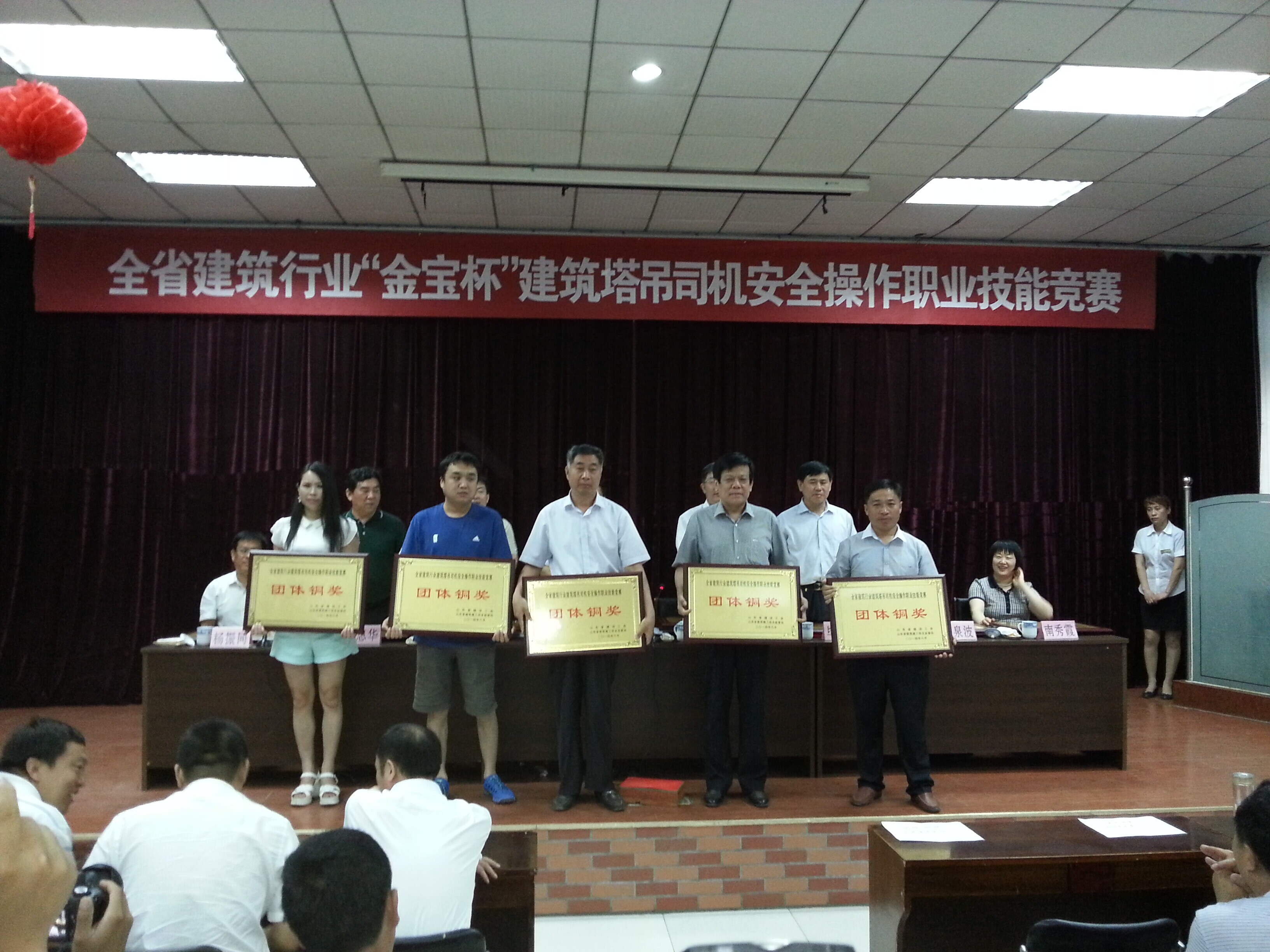6月17日--19日,全省建筑行业“金宝杯”建筑塔吊司机安全操作职业技能竞赛在潍坊市金宝职业培训学校举行。全省17个地市的34名选手在过山吊沙、砸啤酒瓶两个项目上进行了激烈的角逐,最终代表我市出赛的山东德建集团有限公司塔吊选手吕纪波、信号指挥工选手王传星获得了个人铜奖,吕纪波获得过山吊沙单项最高奖;同时德州市代表队获得团体铜奖、优秀组织奖的优异成绩。